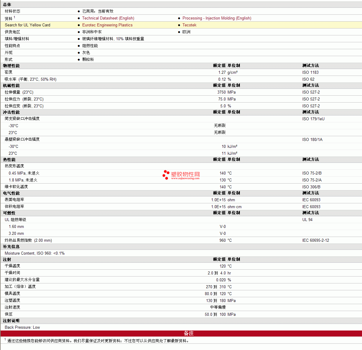 Tecotek PC42 GR10 GR ZG20物性表 见图片