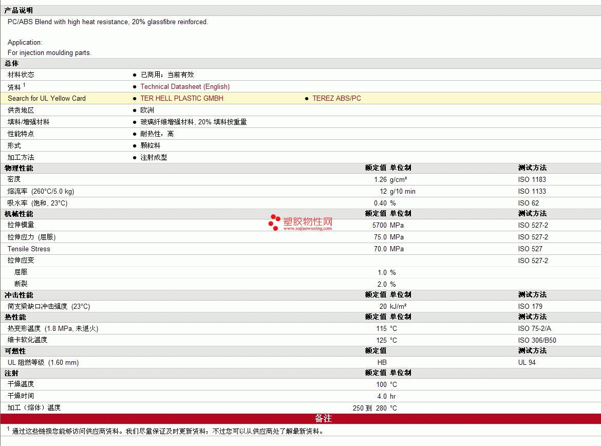 TEREZ ABS PC Blend 3301 GF20物性表 见图片