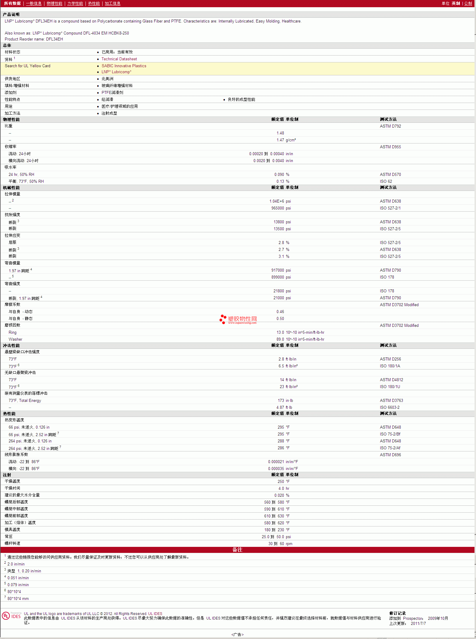 需了解LNP Lubricomp PTFE DFL34EH 物性表更多详情,材质证明、ROHS(SGS)报告、物质安全资料表(MSDS)、UL黄卡等,最新行情报价等可来电咨询:赵先生:13424755533或QQ: 27660005