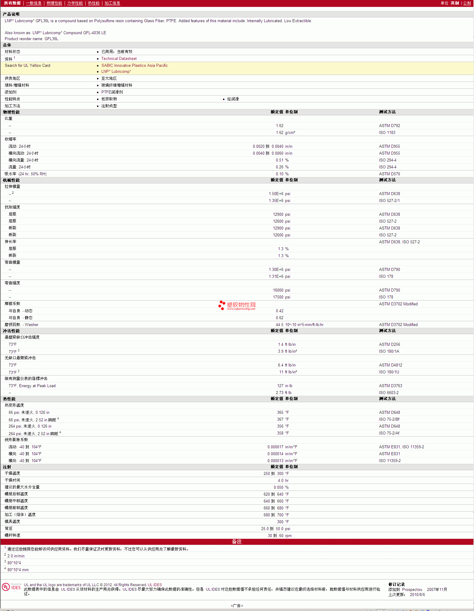 更多LNP Lubricomp PTFE GFL36L 物性表报价,图片、材质证明、UL黄卡、物质安全资料表(MSDS)等,最新行情报价等可来电咨询赵先生:13424755533或QQ: 27660005