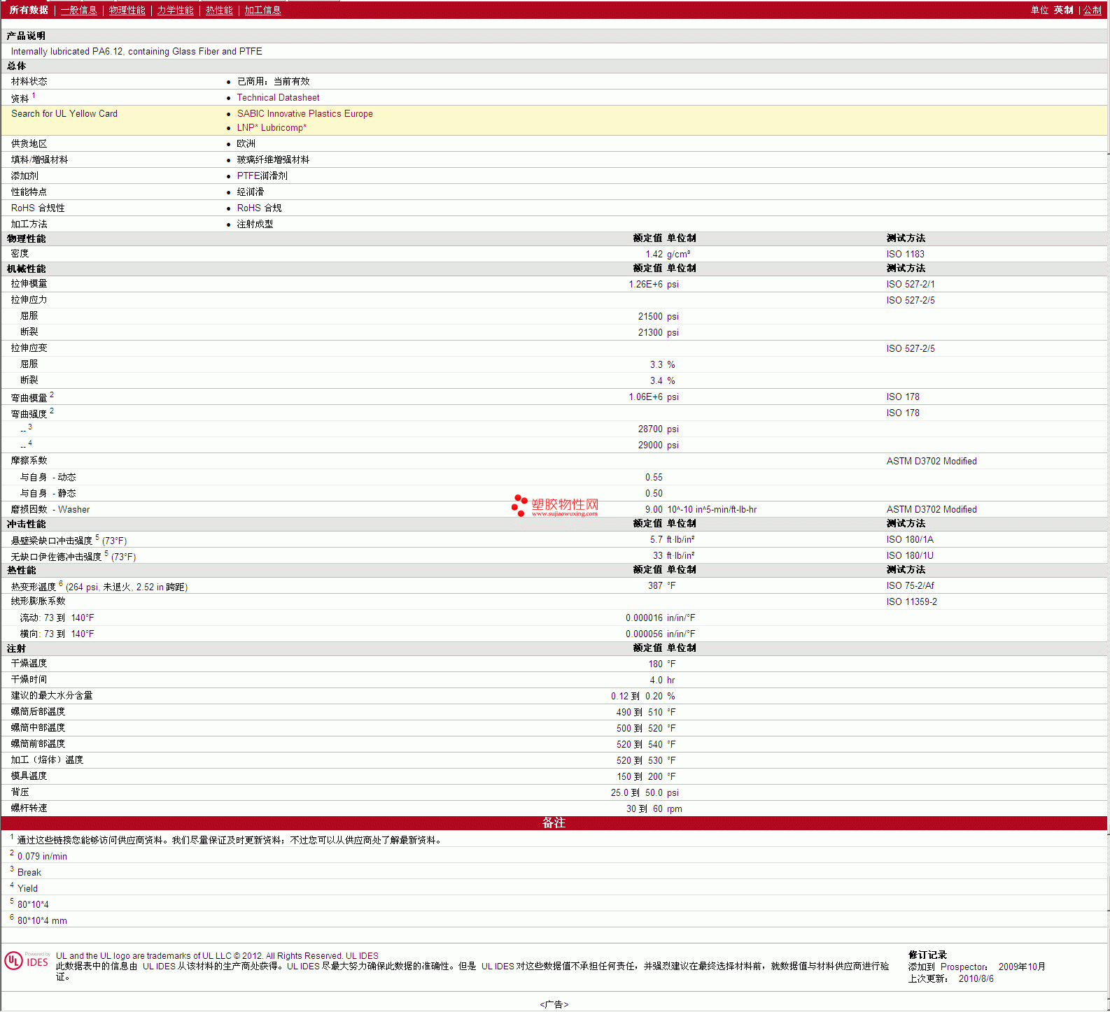 更多LNP Lubricomp PTFE IFL36R 物性表报价,图片、材质证明、UL黄卡、物质安全资料表(MSDS)等可来电咨询赵先生:13424755533或QQ: 27660005