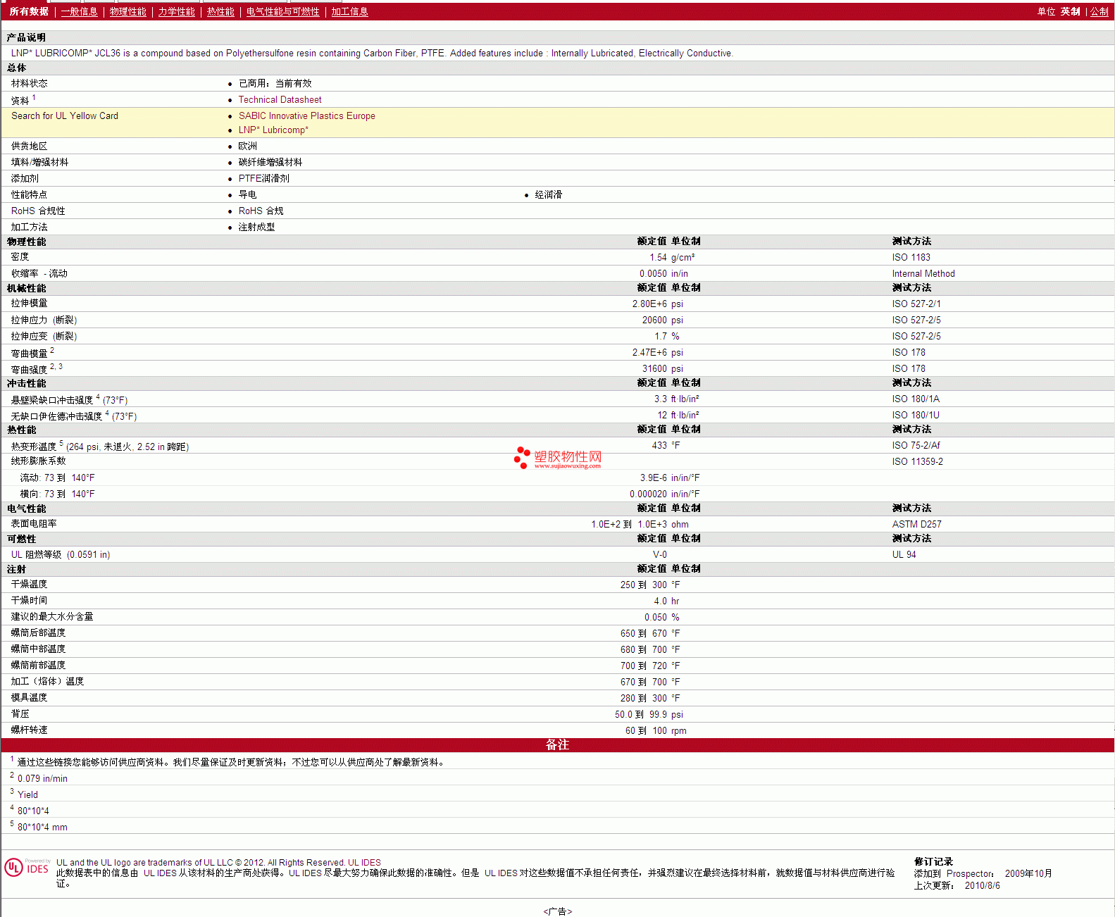 需了解 LNP Lubricomp PTFE JCL36 物性表更多详情,材质证明、ROHS(SGS)报告、物质安全资料表(MSDS)、UL黄卡等,最新行情报价等可来电咨询:赵先生:13424755533或QQ: 27660005