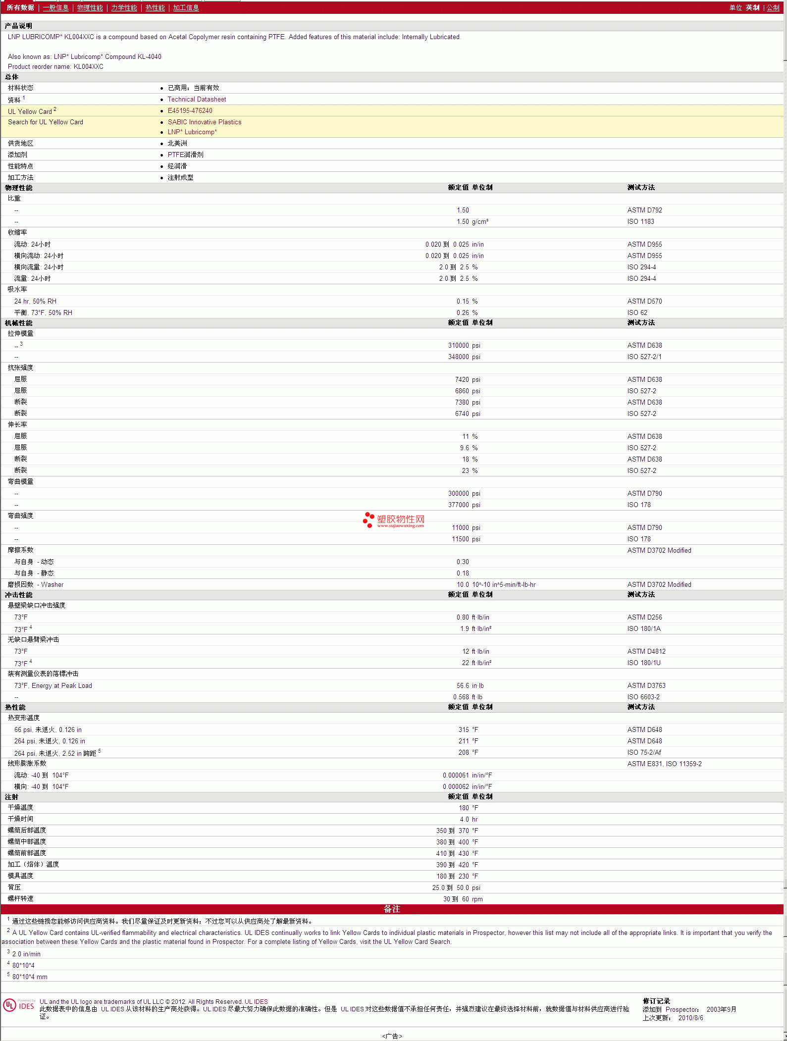 更多LNP Lubricomp PTFE KL004XXC 物性表图片,报价、物质安全资料表(MSDS)、材质证明、UL黄卡等,最新行情报价等可来电咨询赵先生:13424755533或QQ: 27660005
