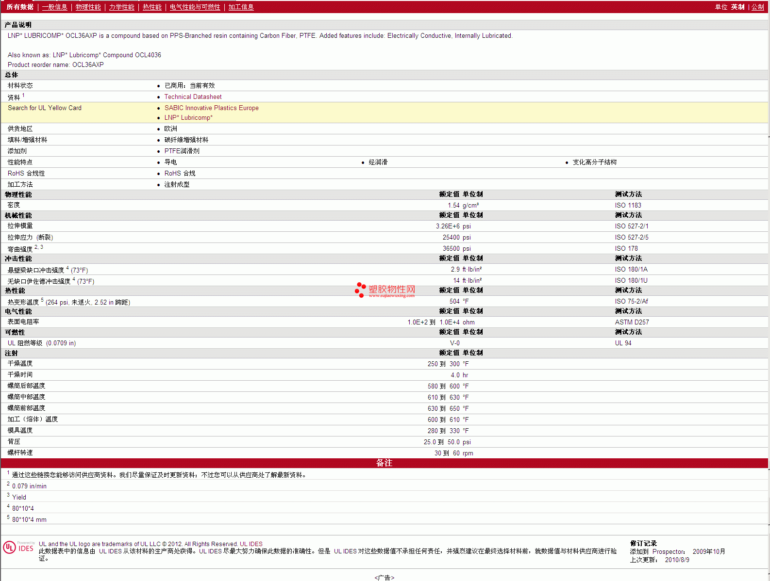 LNP Lubricomp PTFE OCL36AXP 详细情况如图