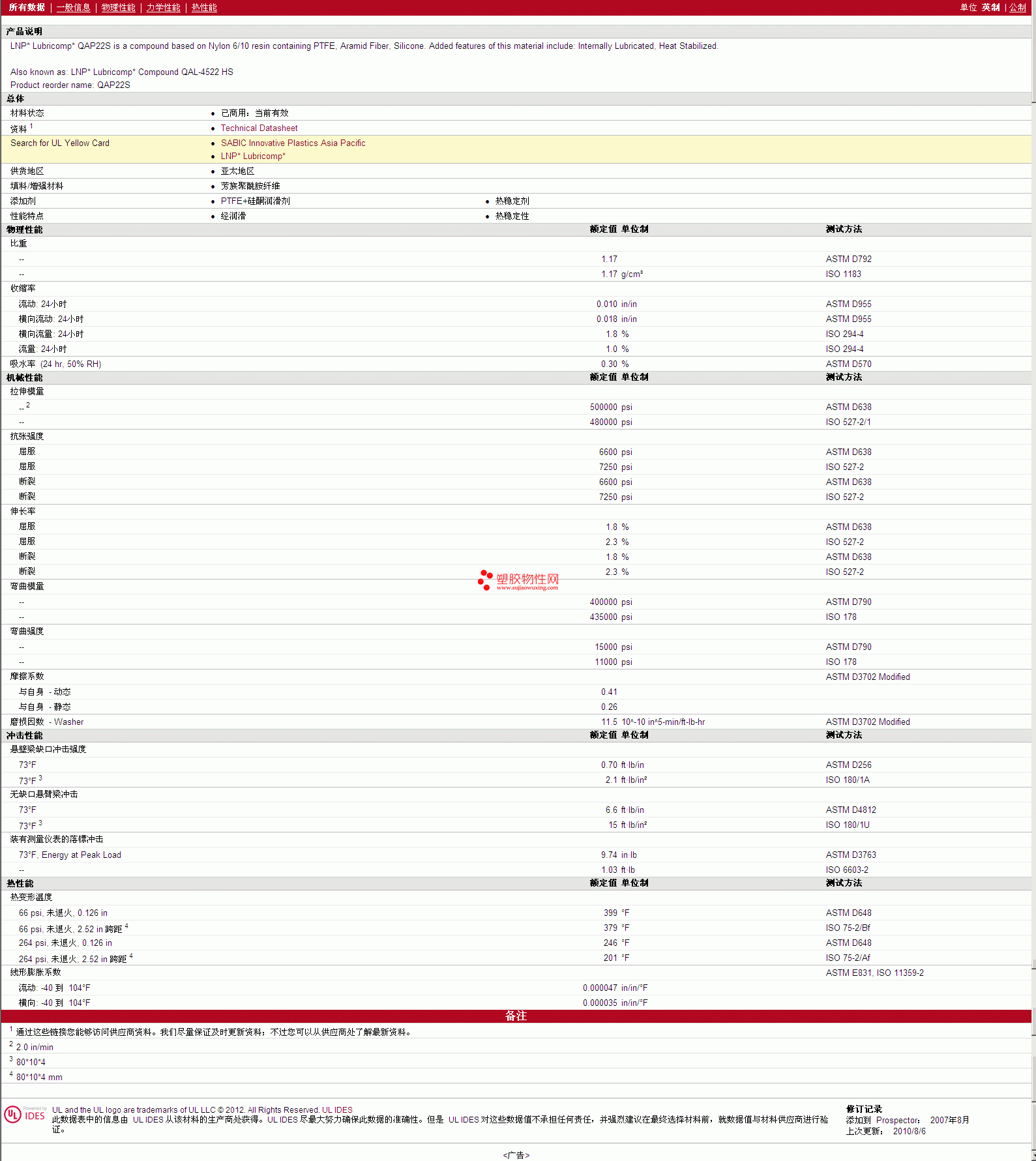 需了解LNP Lubricomp PTFE QAP22S 物性表更多详情,材质证明、ROHS(SGS)报告、物质安全资料表(MSDS)、UL黄卡等,最新行情报价等可来电咨询:赵先生:13424755533或QQ: 27660005