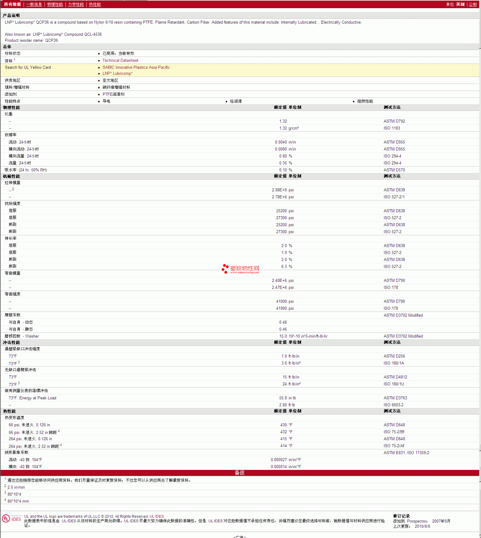 更多LNP Lubricomp PTFE QCP36 物性表图片,报价、物质安全资料表(MSDS)、材质证明、UL黄卡等,最新行情报价等可来电咨询赵先生:13424755533或QQ: 27660005