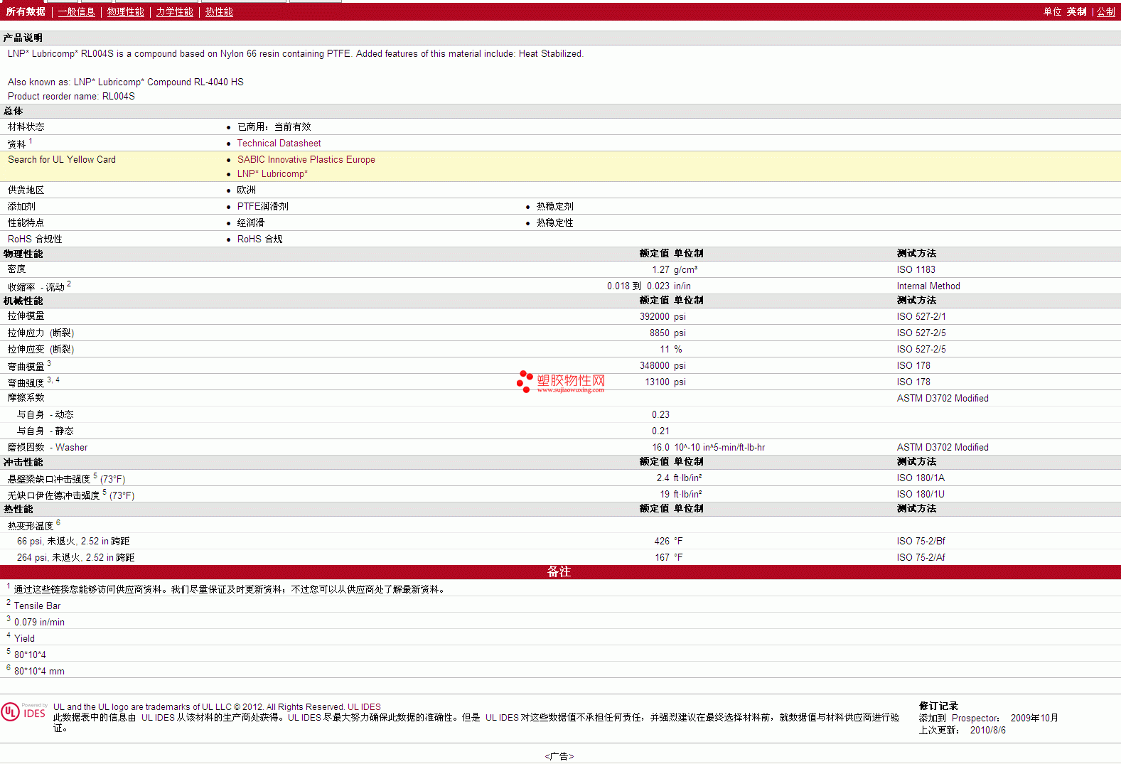 需要了解LNP Lubricomp PTFE RL004S 更多详情,赵先生:13424755533或QQ: 27660005