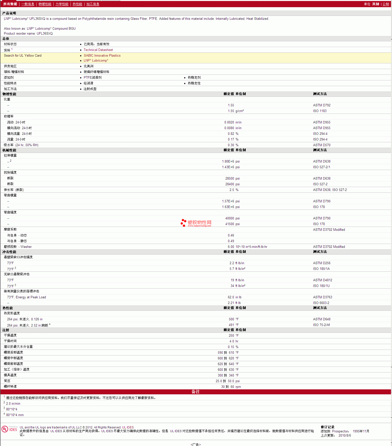 需了解 LNP Lubricomp PTFE UFL36SXQ 物性表材质证明、ROHS(SGS)报告、物质安全资料表(MSDS)、UL黄卡等可来电咨询:赵先生:13424755533或QQ: 27660005