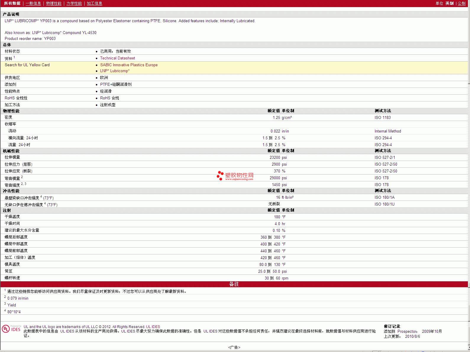 如需了解LNP Lubricomp PTFE YP003 物性表更多详情,ROHS(SGS)报告、物质安全资料表(MSDS)、材质证明、UL黄卡等,最新行情报价等可来电咨询:赵先生:13424755533或QQ: 27660005