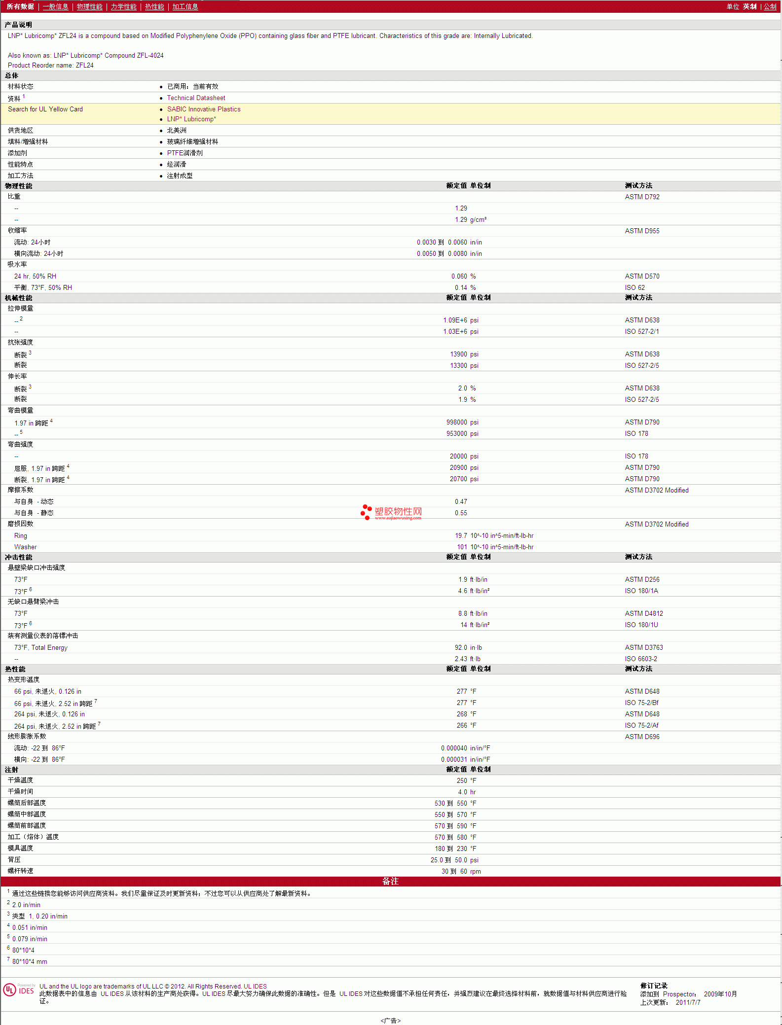 需了解LNP Lubricomp PTFE ZFL24 物性表更多详情,材质证明、ROHS(SGS)报告、物质安全资料表(MSDS)、UL黄卡等,最新行情报价等可来电咨询:赵先生:13424755533或QQ: 27660005