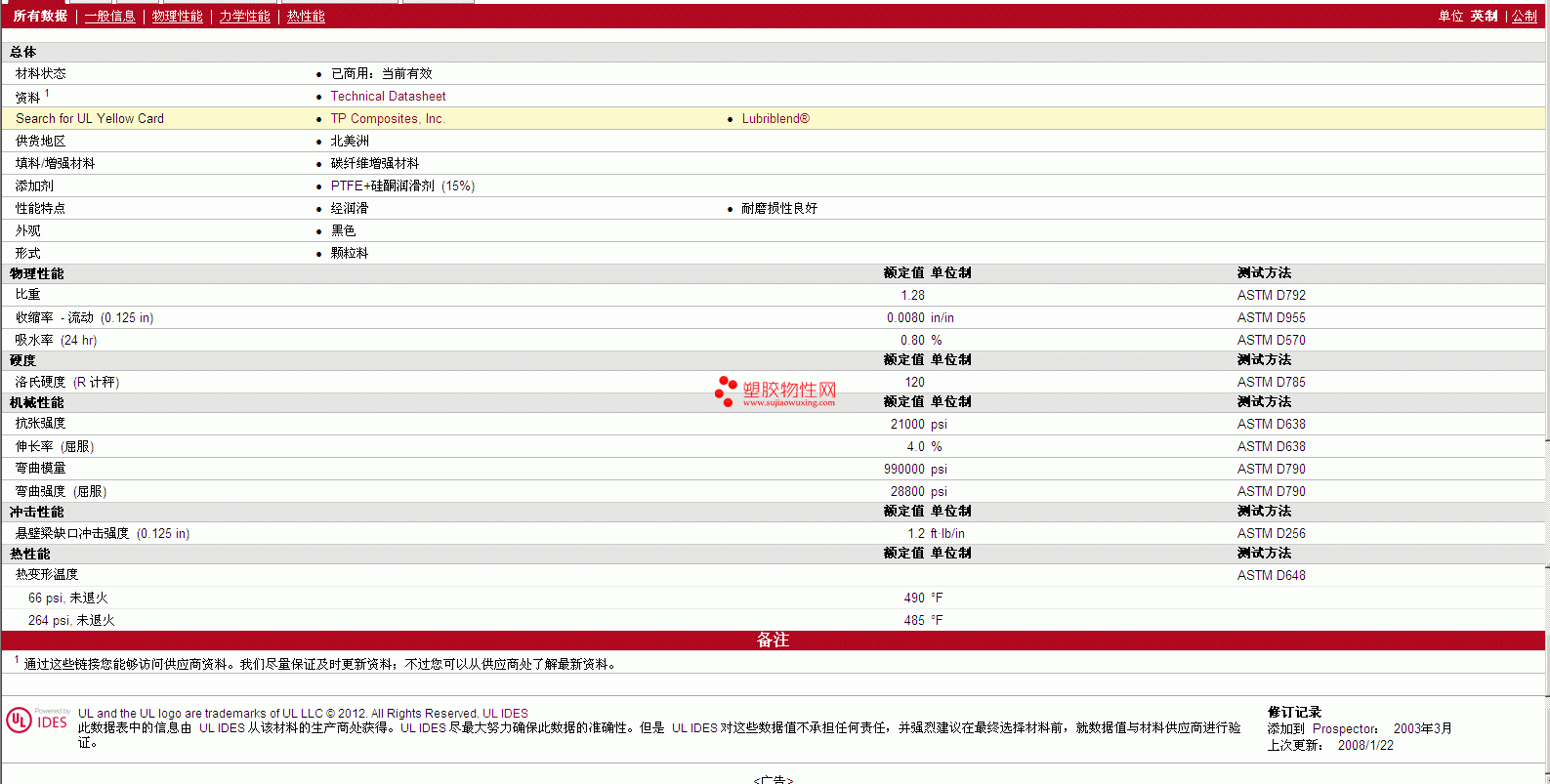 需了解Lubriblend PTFE PA6/6 CF10 TL15 BK 物性表更多详情,材质证明、ROHS(SGS)报告、物质安全资料表(MSDS)、UL黄卡等,最新行情报价等可来电咨询:赵先生:13424755533或QQ: 27660005