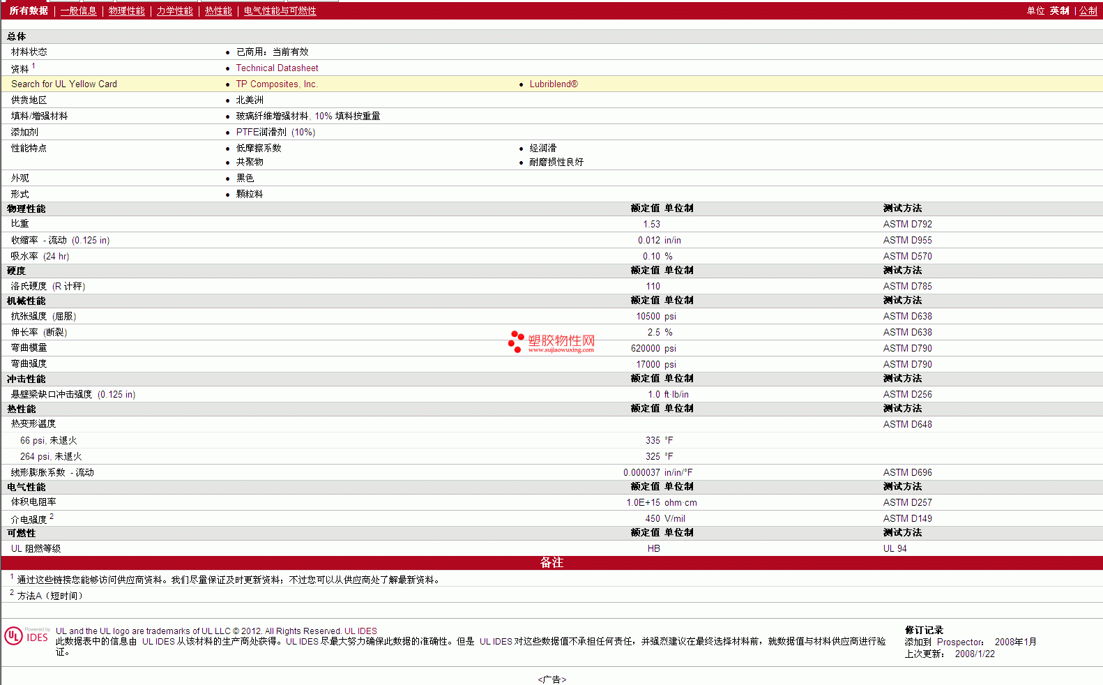Lubriblend PTFE POM CO GF10 TL10 BK 物性表