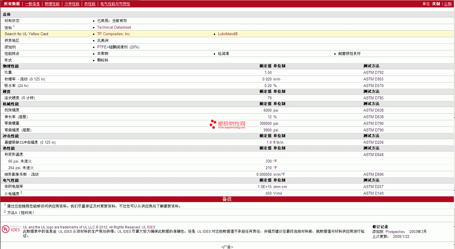 更多Lubriblend PTFE POM CO TS20 物性表图片,报价、物质安全资料表(MSDS)、材质证明、UL黄卡等,最新行情报价等可来电咨询赵先生:13424755533或QQ: 27660005