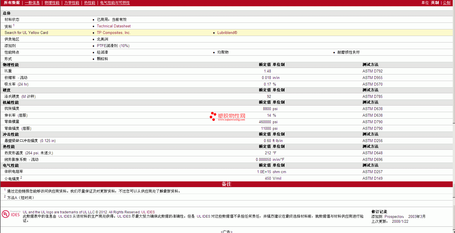 如需了解Lubriblend PTFE POM HO TL10 物性表更多详情,ROHS(SGS)报告、物质安全资料表(MSDS)、材质证明、UL黄卡等,最新行情报价等可来电咨询:赵先生:13424755533或QQ: 27660005