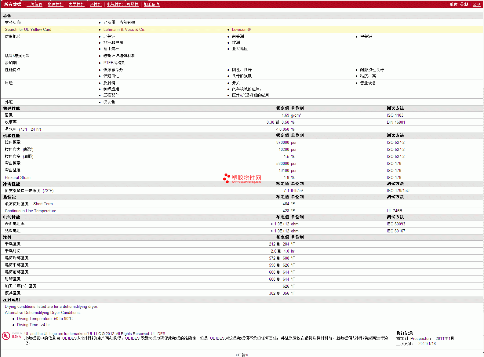 其他工程塑料物性表