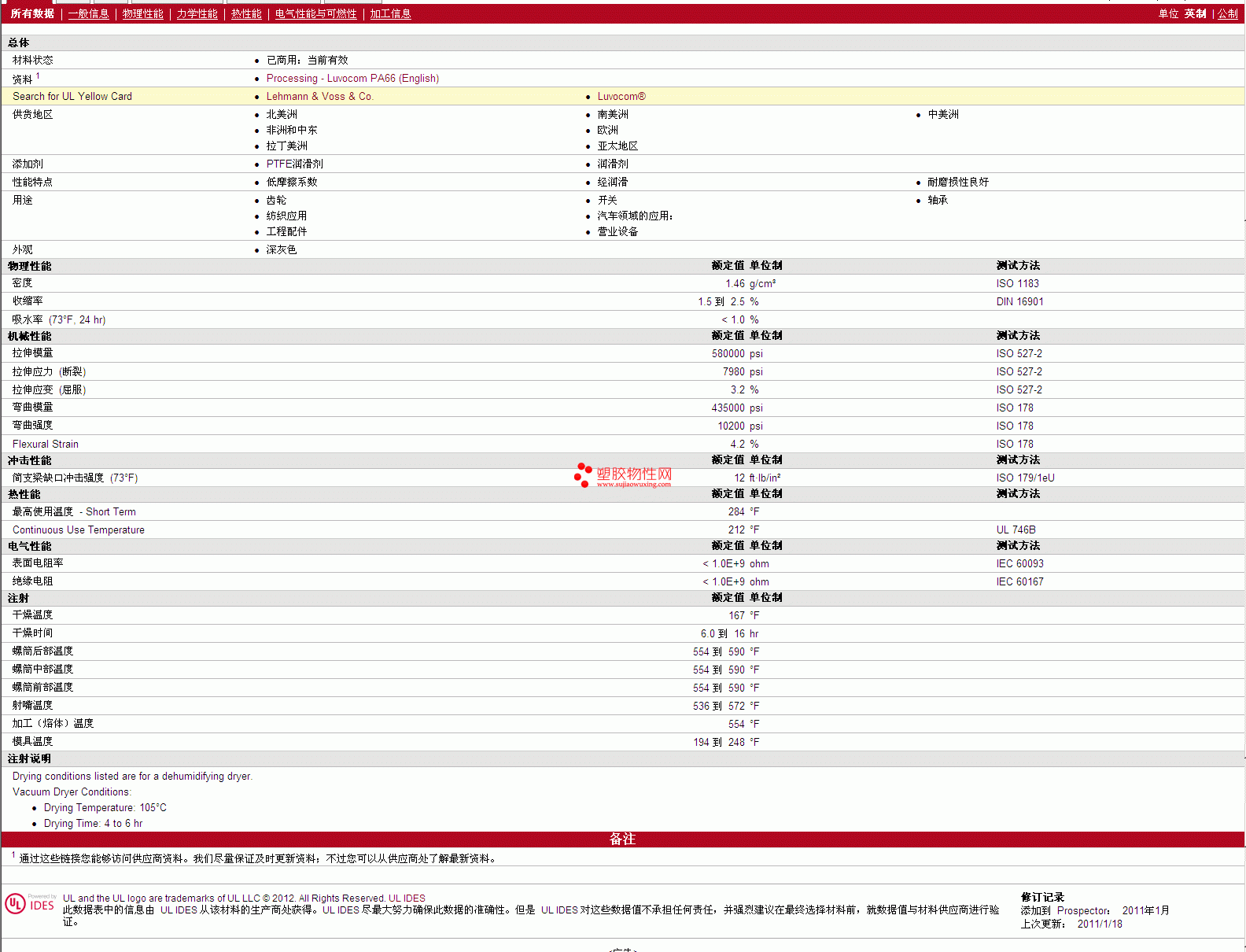 其他工程塑料物性表