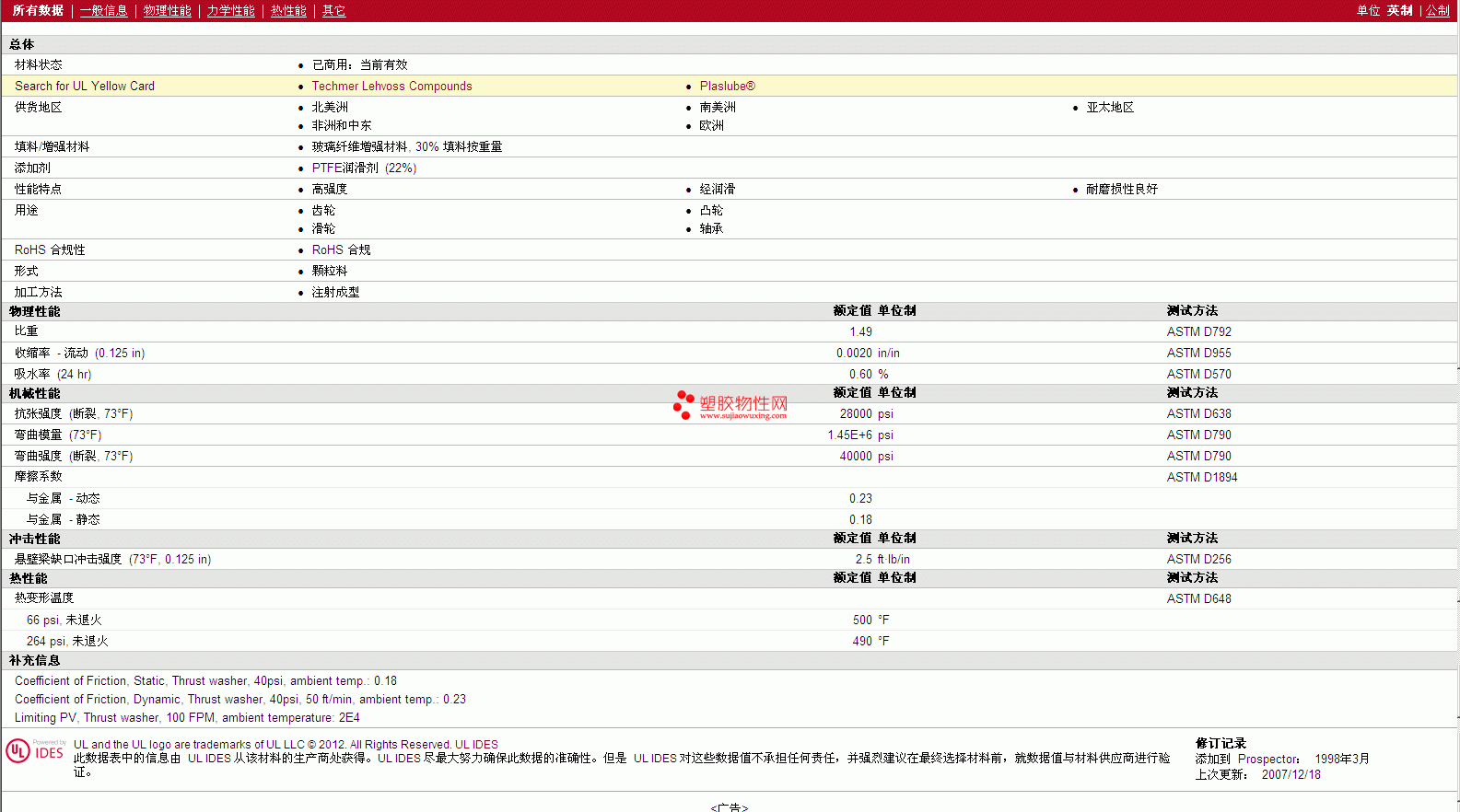更多Plaslube PTFE J-1/30/TF/22 物性表报价,图片、材质证明、UL黄卡、物质安全资料表(MSDS)等,最新行情报价等可来电咨询赵先生:13424755533或QQ: 27660005