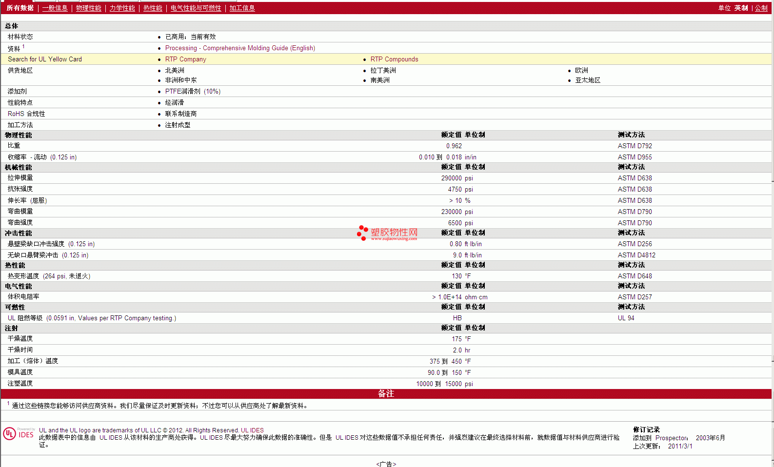 更多RTP Compounds PTFE 100 TFE 10 物性表图片,报价、物质安全资料表(MSDS)、材质证明、UL黄卡等,最新行情报价等可来电咨询赵先生:13424755533或QQ: 27660005