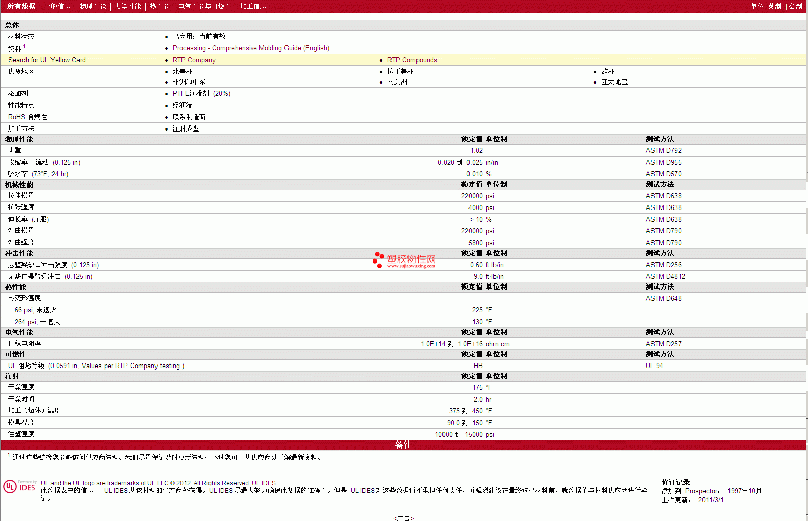 RTP Compounds PTFE 100 TFE 20更多资料见图