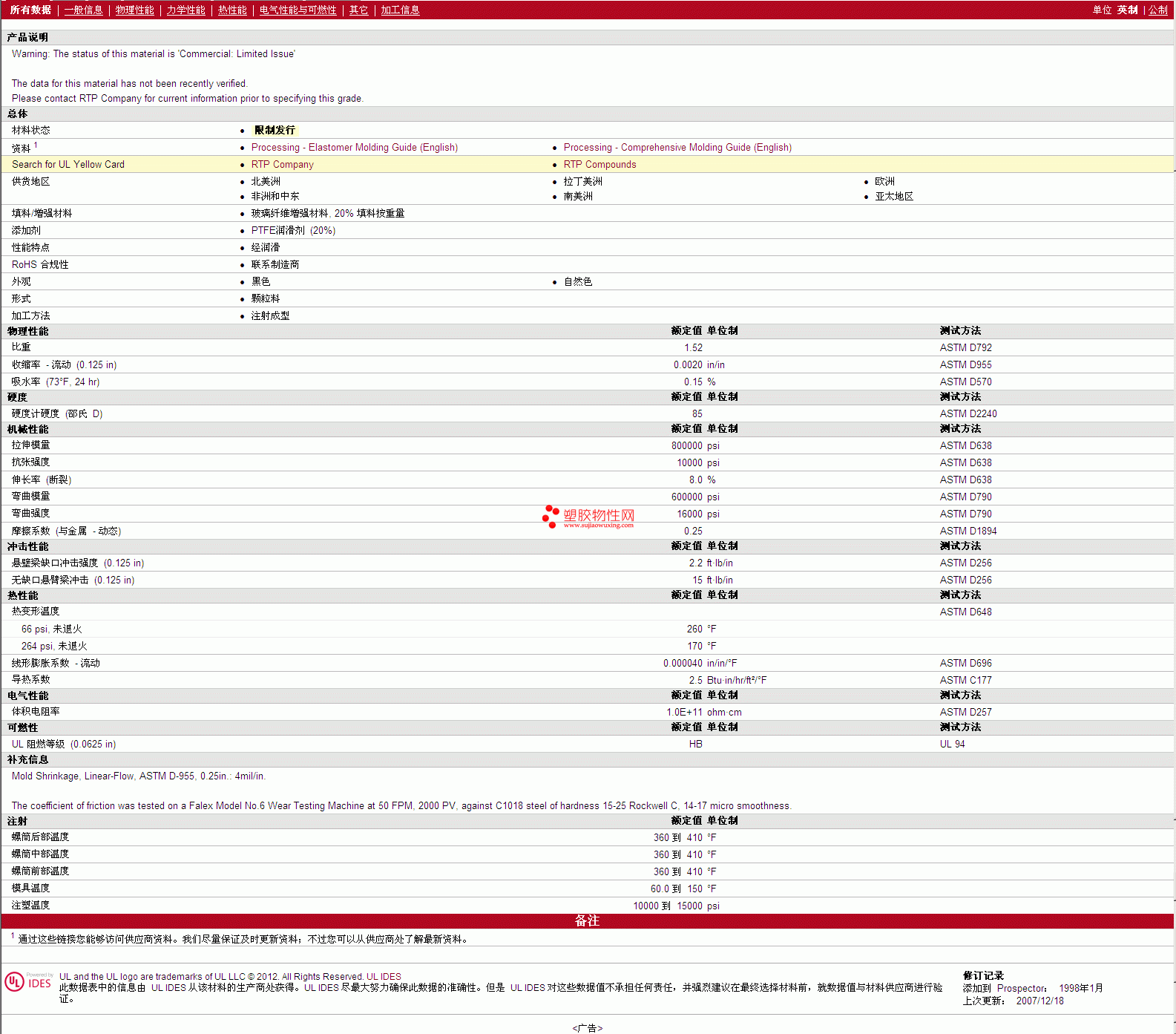 更多RTP Compounds PTFE 1203-80D TFE 20 物性表报价,图片、材质证明、UL黄卡、物质安全资料表(MSDS)等可来电咨询赵先生:13424755533或QQ: 27660005