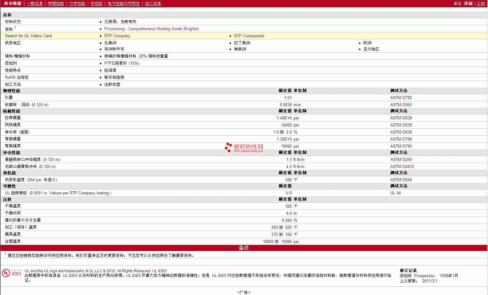 更多RTP Compounds PTFE 1303 TFE 15 物性表报价,图片、材质证明、UL黄卡、物质安全资料表(MSDS)等,最新行情报价等可来电咨询赵先生:13424755533或QQ: 27660005