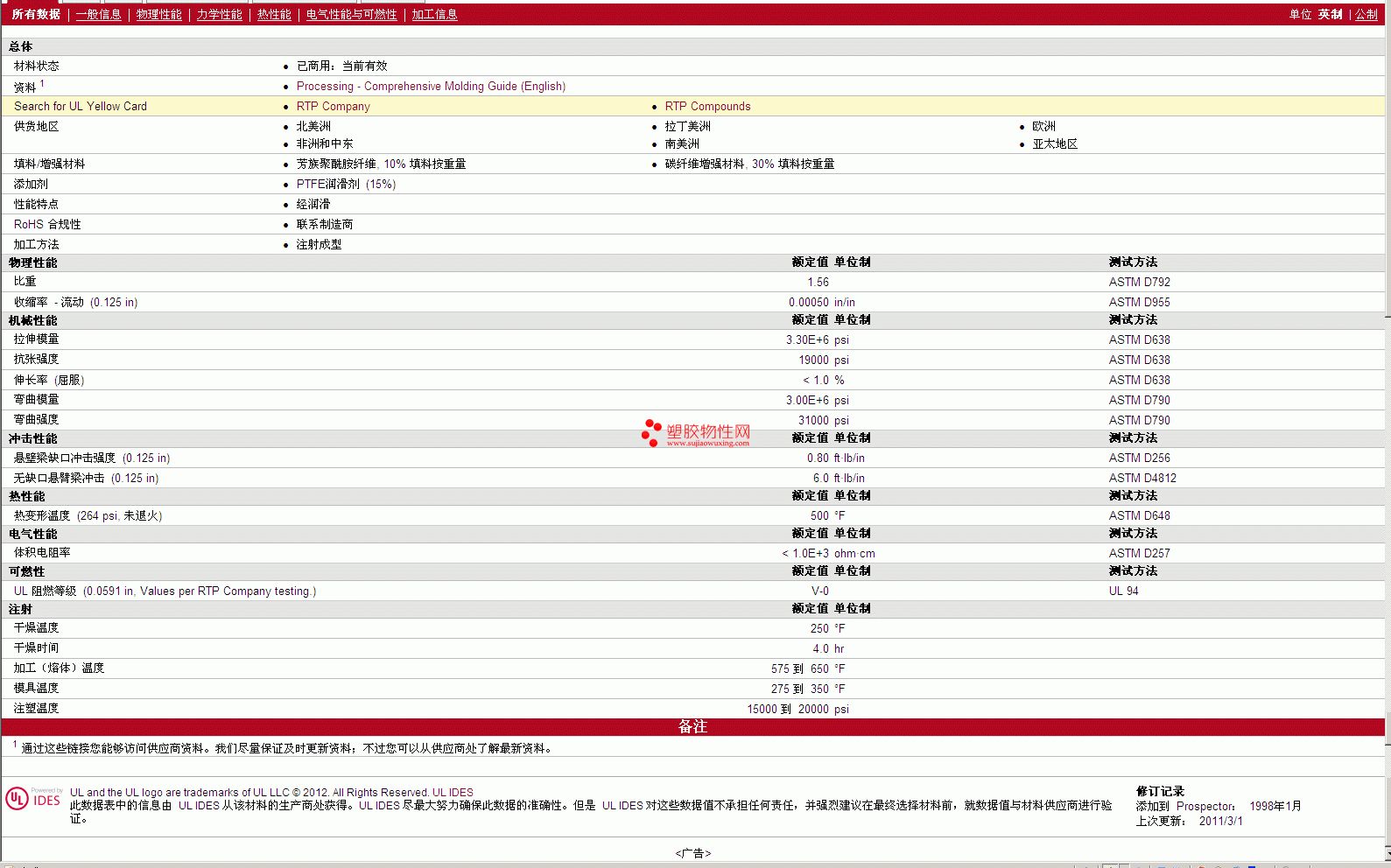 需了解RTP Compounds PTFE 1385 C AR 10 TFE 15 物性表更多详情,材质证明、ROHS(SGS)报告、物质安全资料表(MSDS)、UL黄卡等,最新行情报价等可来电咨询:赵先生:13424755533或QQ: 27660005