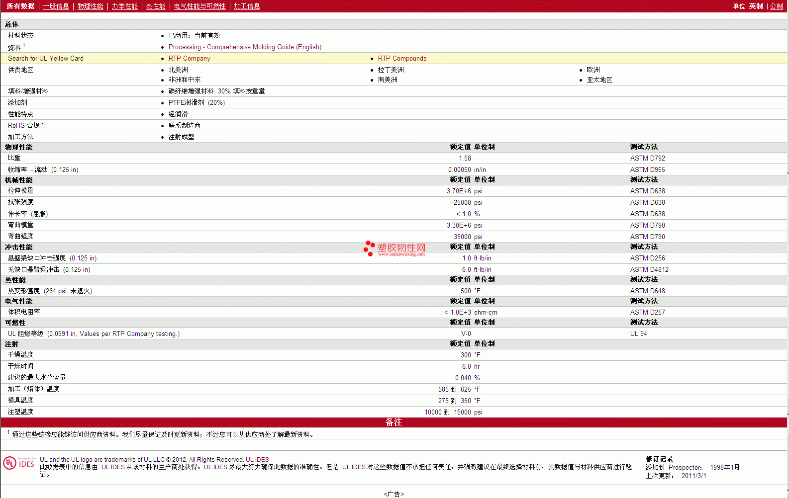 更多RTP Compounds PTFE 1385 TFE 20 物性表报价,图片、材质证明、UL黄卡、物质安全资料表(MSDS)等,最新行情报价等可来电咨询赵先生:13424755533或QQ: 27660005
