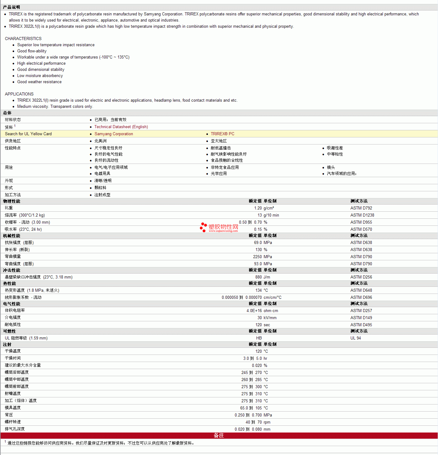 TRIREX PC 3022L1(I)物性表更多资料见下图