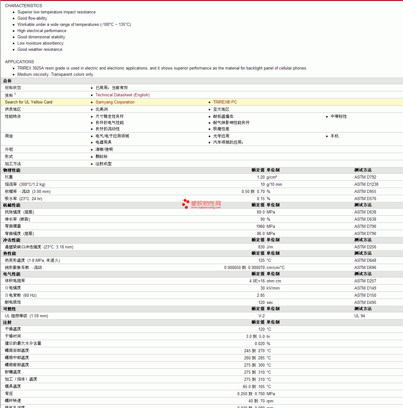 TRIREX PC 3025A (BASF)物性表更多资料见下图