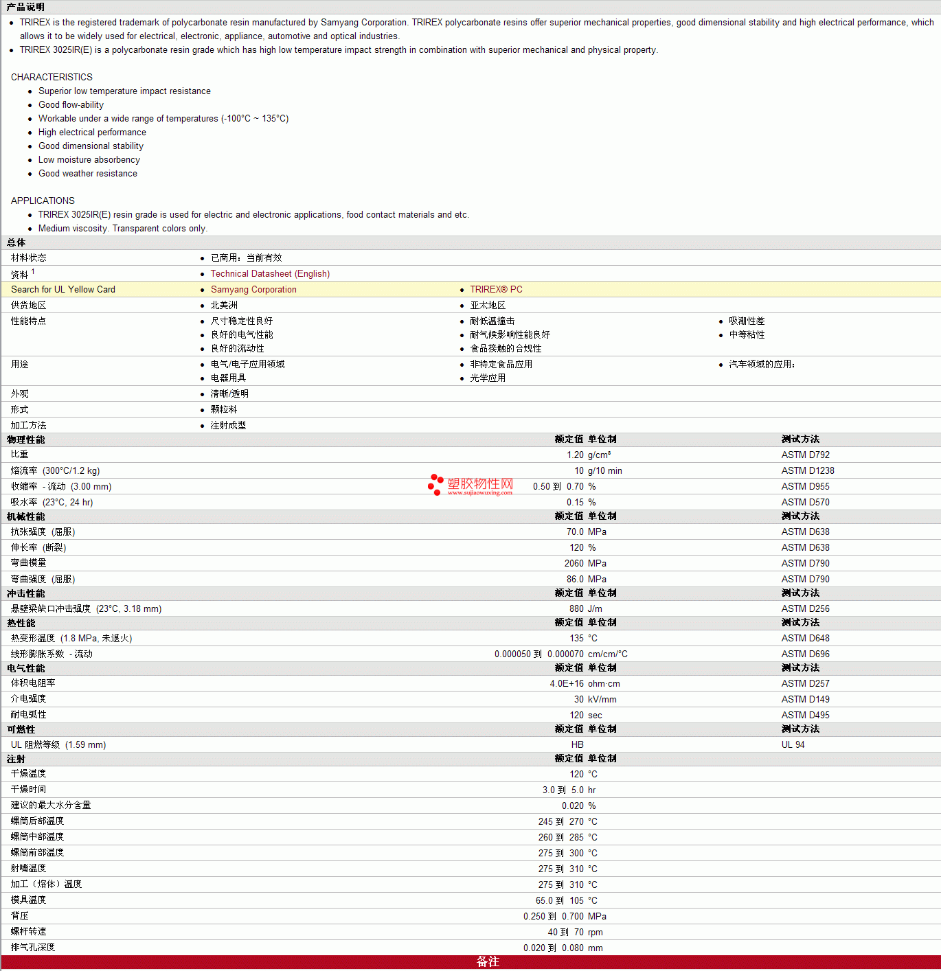 TRIREX PC 3025IR(E)物性表更多资料见下图
