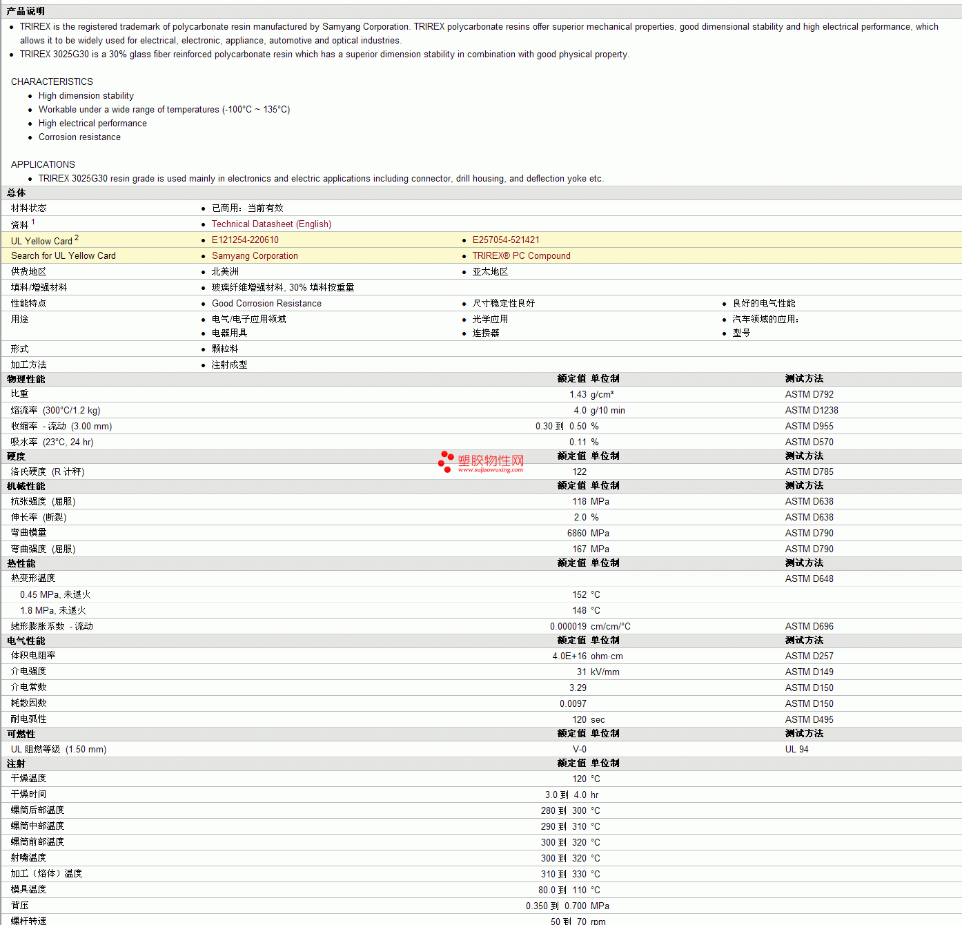 TRIREX PC Compound 3025G30物性表更多资料见下图