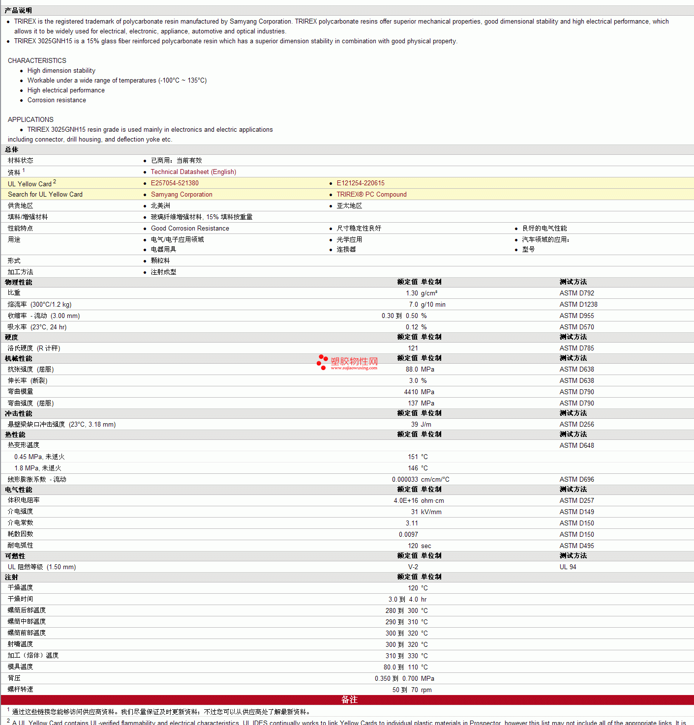 TRIREX PC Compound 3025GNH15物性表 更多资料见下图