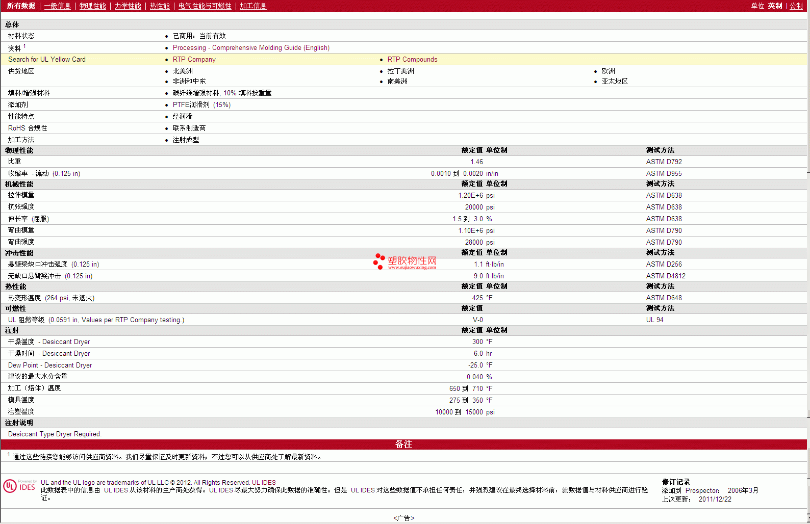 如需了解RTP Compounds PTFE 1481 N TFE 15 物性表更多详情,ROHS(SGS)报告、物质安全资料表(MSDS)、材质证明、UL黄卡等,最新行情报价等可来电咨询:赵先生:13424755533或QQ: 27660005