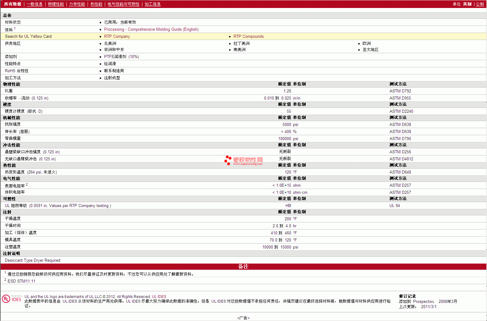 RTP Compounds PTFE 1500-55D TFE 10 物性表