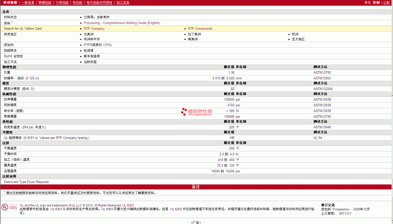 需了解RTP Compounds PTFE 1500-82D TFE 15 物性表材质证明、ROHS(SGS)报告、物质安全资料表(MSDS)、UL黄卡等可来电咨询:赵先生:13424755533或QQ: 27660005