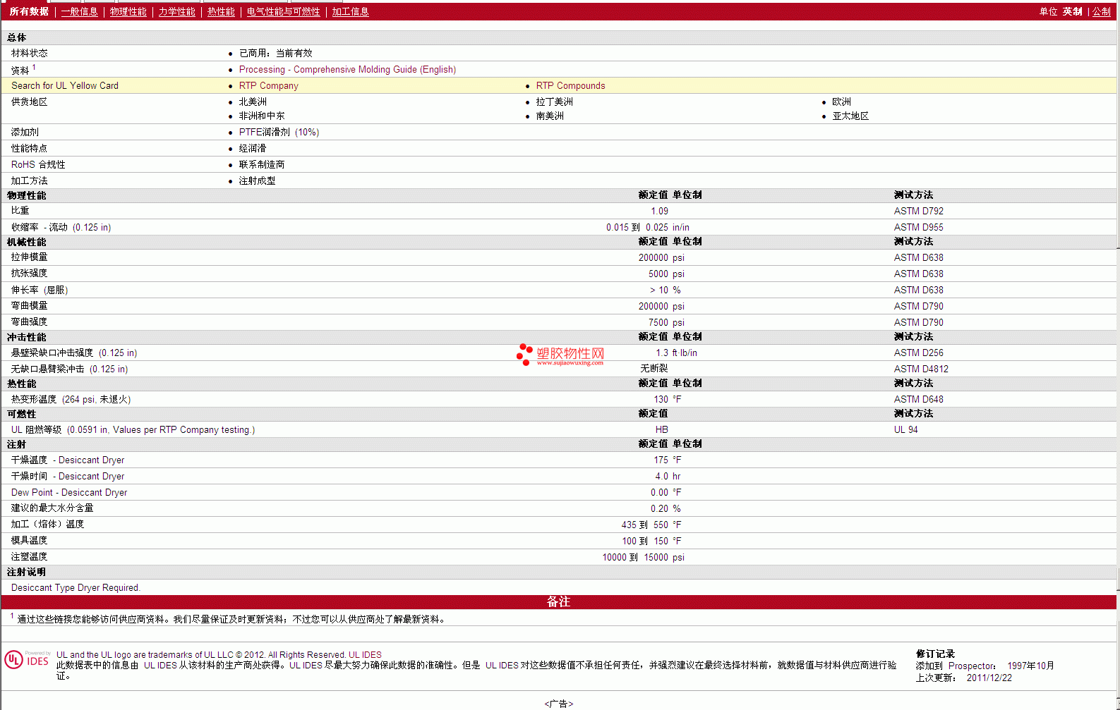 RTP Compounds PTFE 200 C TFE 10 物性表