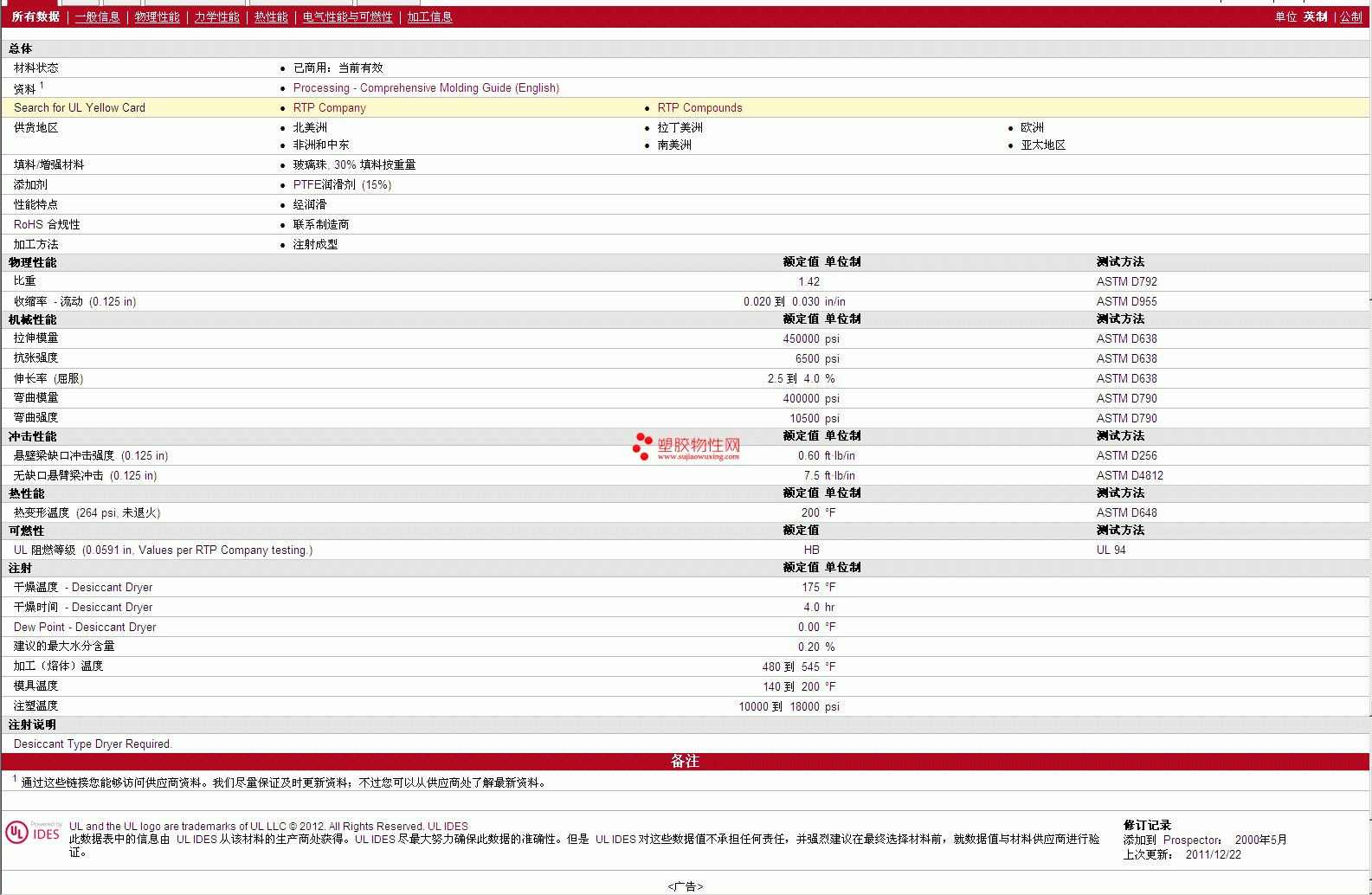 更多RTP Compounds PTFE 200 D GB 30 TFE 15 物性表报价,图片、材质证明、UL黄卡、物质安全资料表(MSDS)等可来电咨询赵先生:13424755533或QQ: 27660005