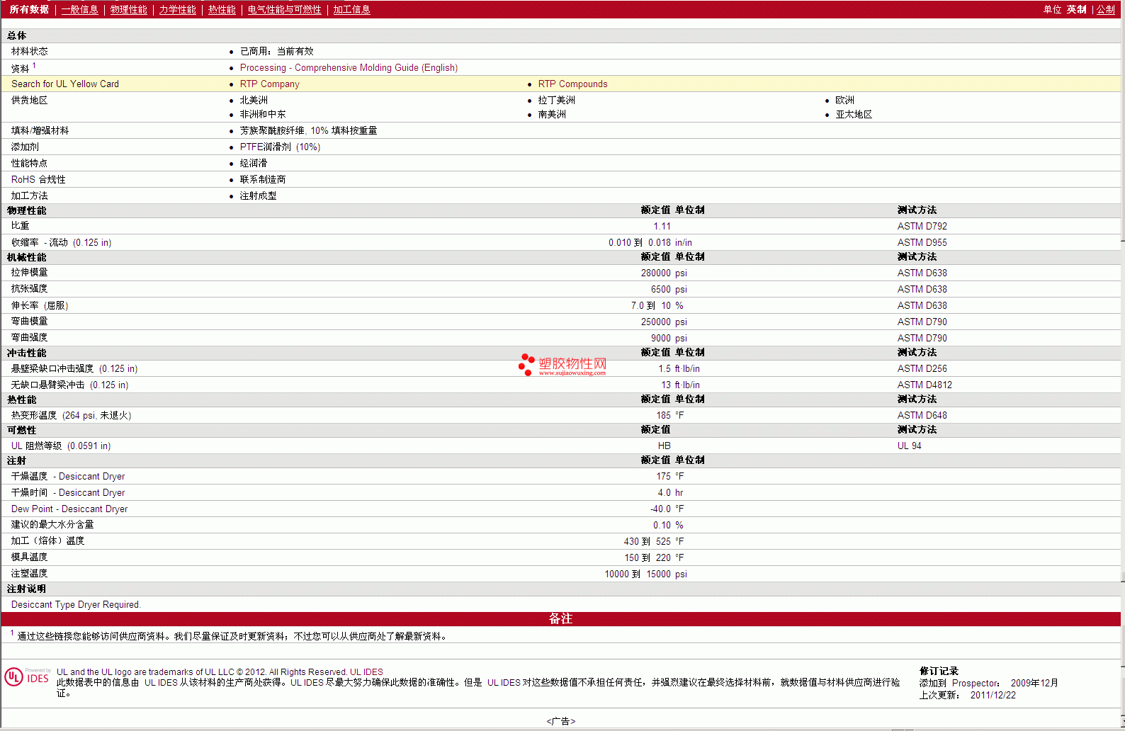 更多 RTP Compounds PTFE 200 F AR 10 TFE 10 物性表报价,图片、材质证明、UL黄卡、物质安全资料表(MSDS)等可来电咨询赵先生:13424755533或QQ: 27660005