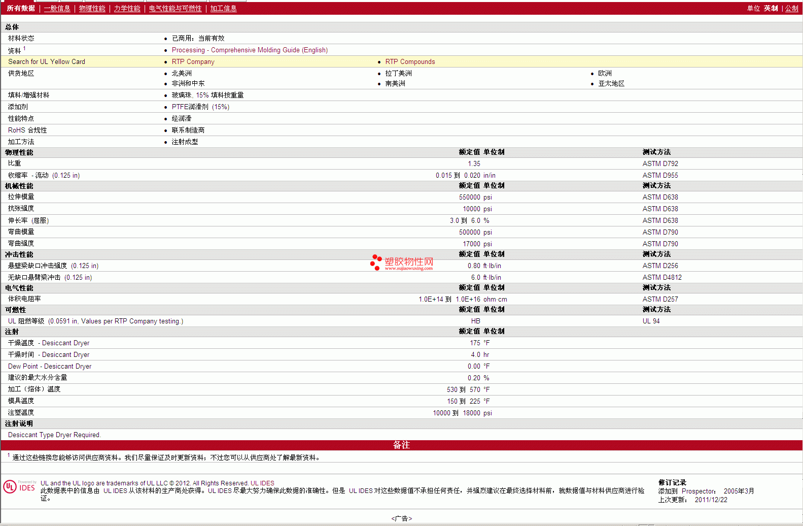 更多RTP Compounds PTFE 200 GB 15 TFE 15 物性表图片,报价、物质安全资料表(MSDS)、材质证明、UL黄卡等,最新行情报价等可来电咨询赵先生:13424755533或QQ: 27660005