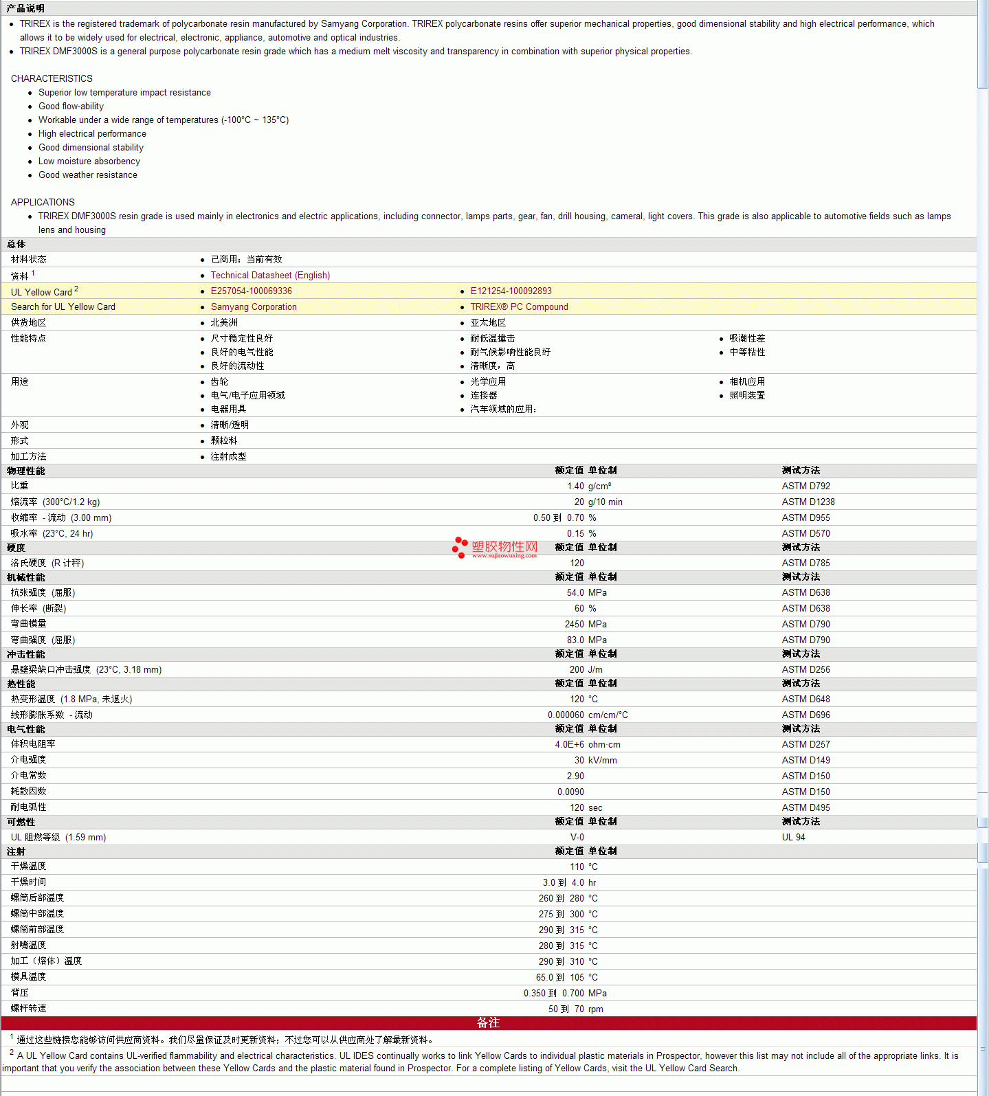 TRIREX PC Compound DMF3000S物性表更多资料见下图