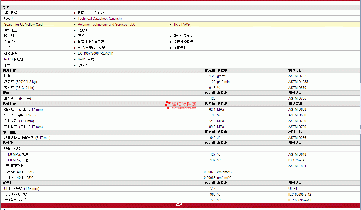 TRISTAR PC-10R-(V20)物性表 更多资料见下图