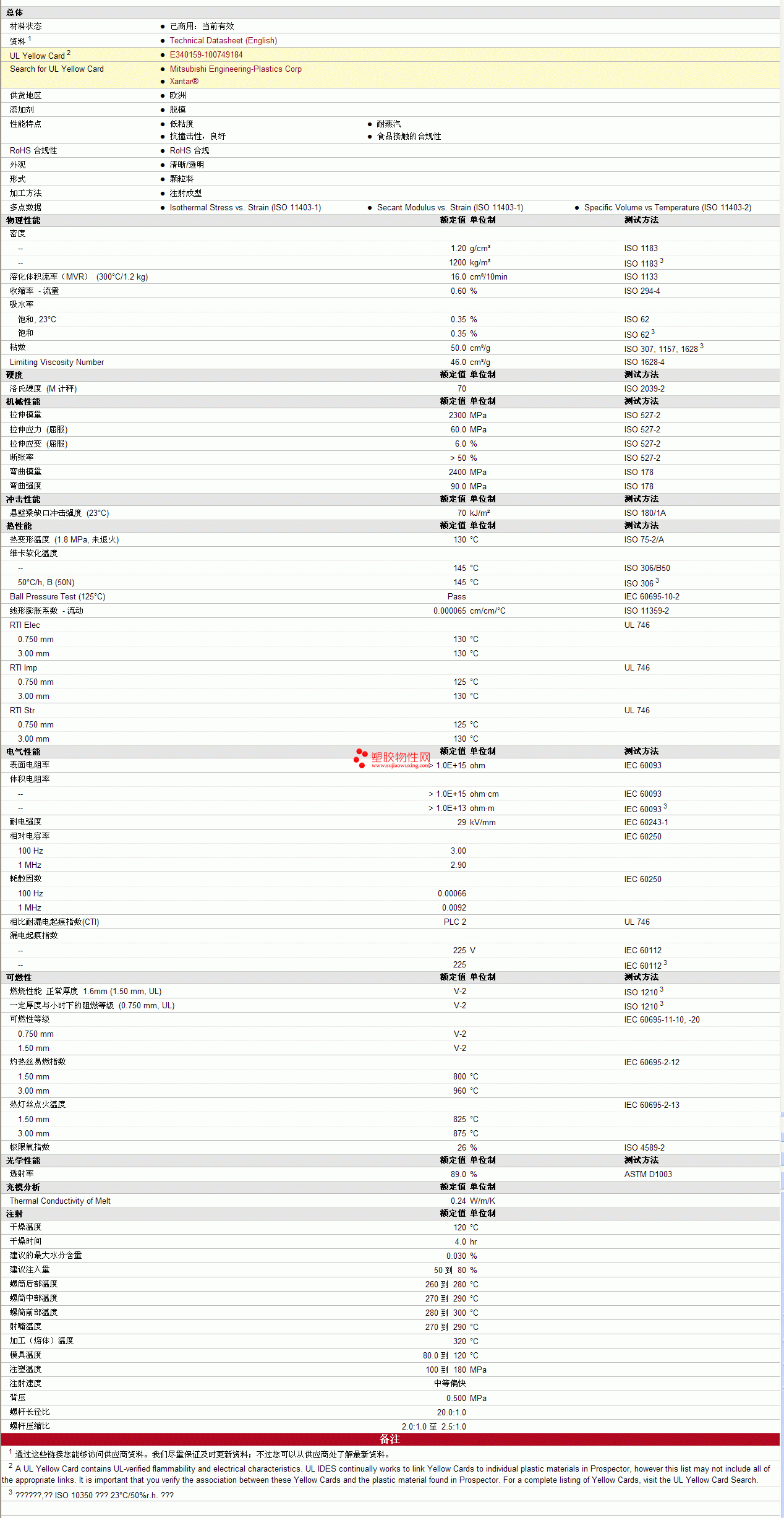 Xantar pc 19 SR FD物性表 见图片