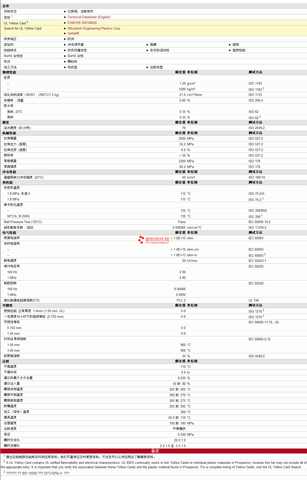 Xantar pc MX 1001物性表见图片