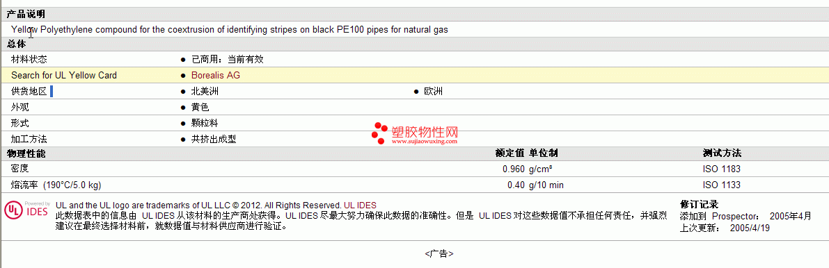 Borealis PE HE2496物性表 见图片