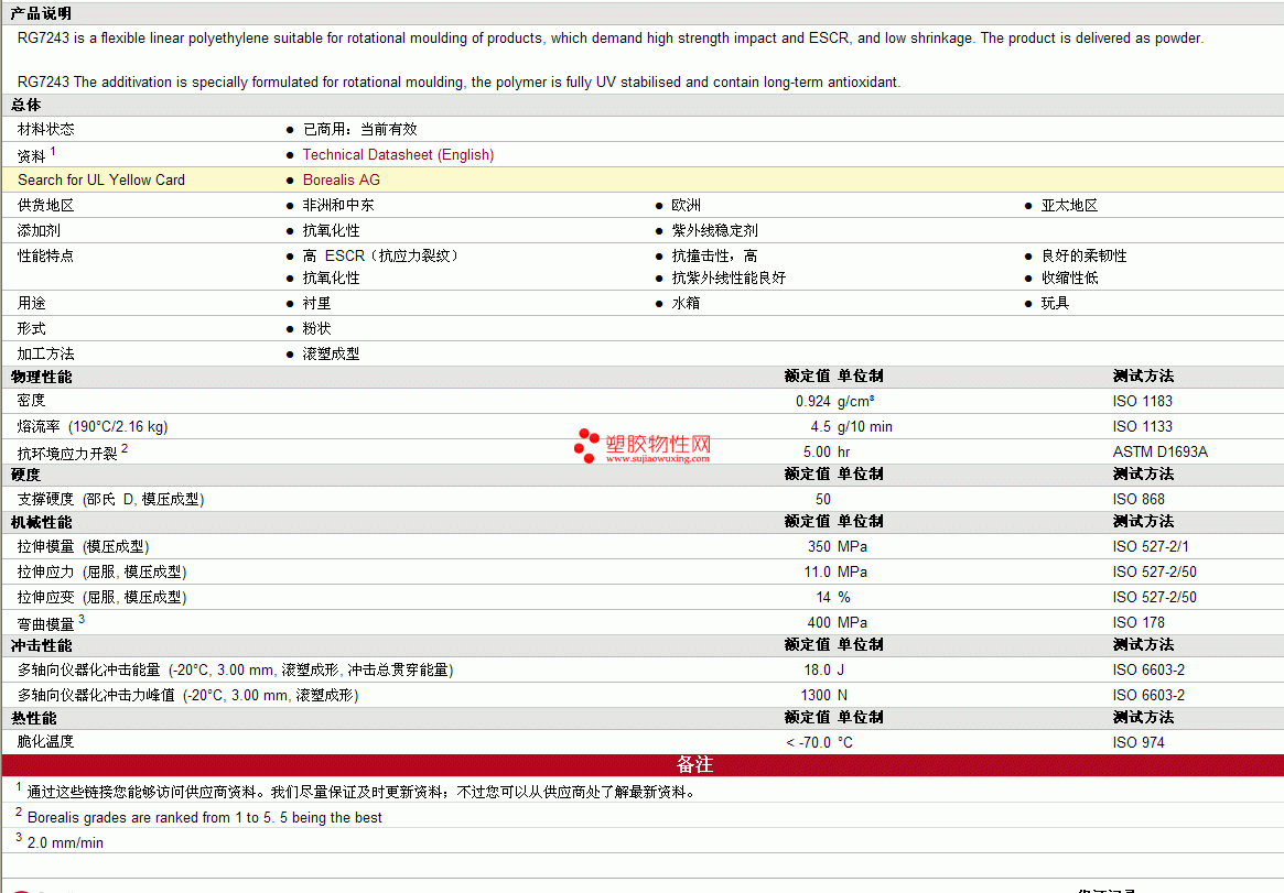 | 机械性能 | 额定值 | 单位制 | 测试方法 |