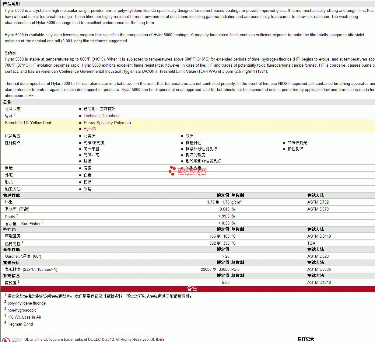 Hylar PVDF 5000物性表 见图片