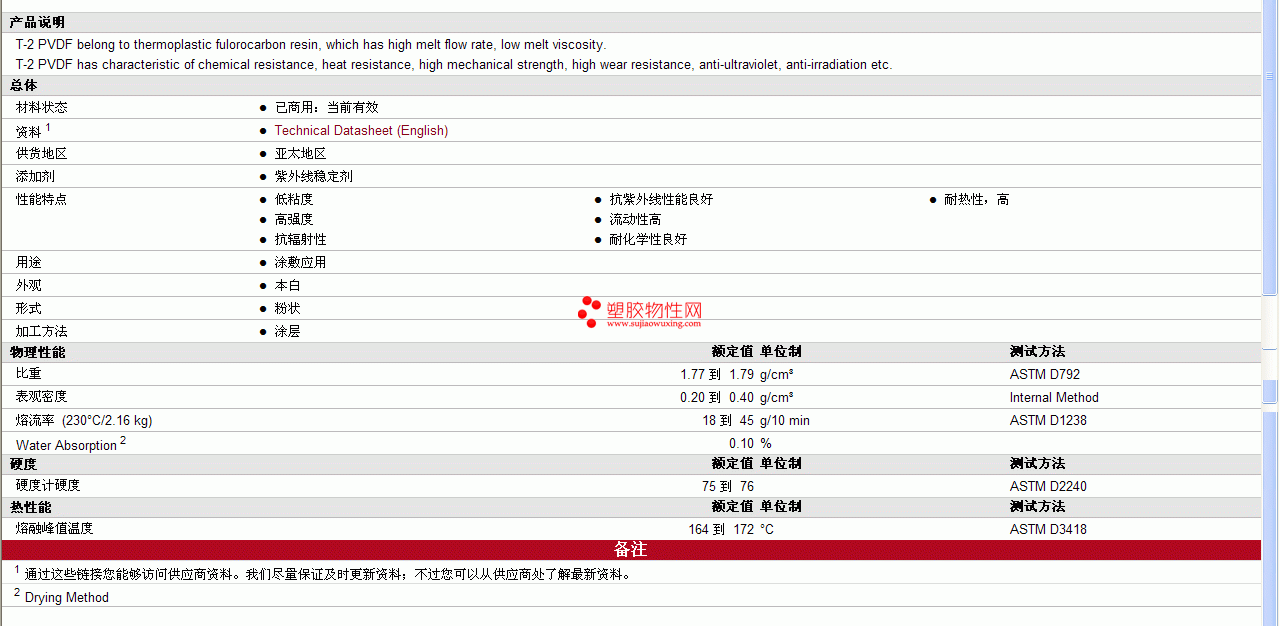 Shanghai Ofluorine PVDF T-2物性表 见图片