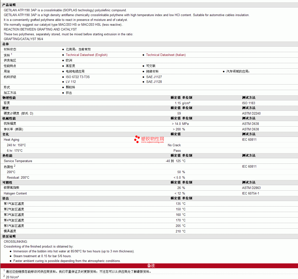 GETILAN xlpe ATP/190 3AP物性表 见图片