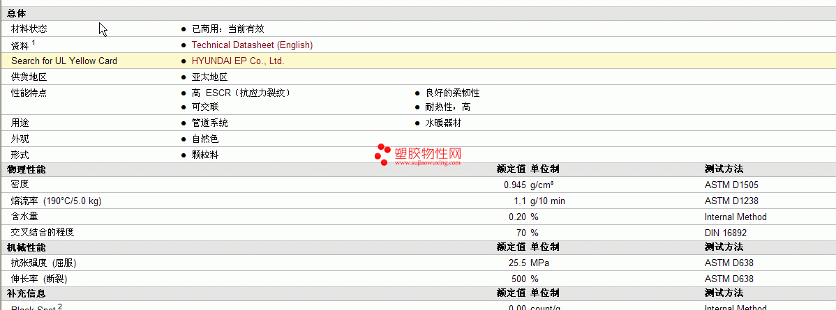 Hyundai EP XLPE XP460/Natural物性表 图片