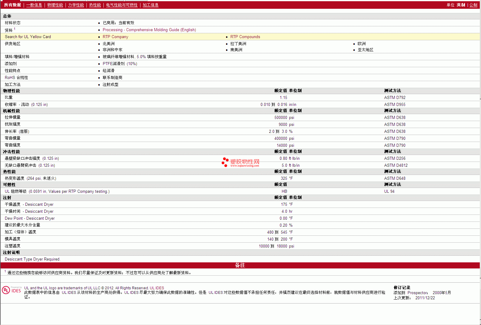 更多RTP Compounds PTFE 200.5 D TFE 10 物性表报价,图片、材质证明、UL黄卡、物质安全资料表(MSDS)等,最新行情报价等可来电咨询赵先生:13424755533或QQ: 27660005